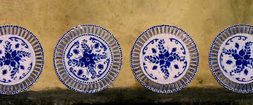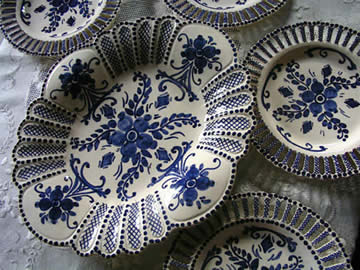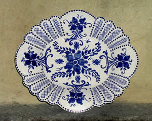 This blue and white earthenware is taken from a 17th century pattern popular in the northern Portuguese town of Barcelos, where earthenware has been made and painted by hand for centuries.