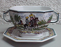 Hand painted by artisans in Portugal, our Hunt Scene Earthenware (Faience) is decorated with quaint scenes of country life in Portugal.