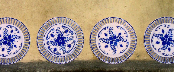 This blue and white earthenware is taken from a 17th century pattern popular in the northern Portuguese town of Barcelos, where earthenware has been made and painted by hand for centuries.